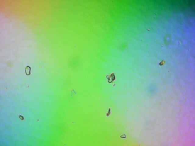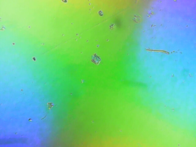 I placed a microscope with LED lights on the surface and enlarged it 500x. Twisting and turning the microscope resulted in some fascinating and artsy pictures: