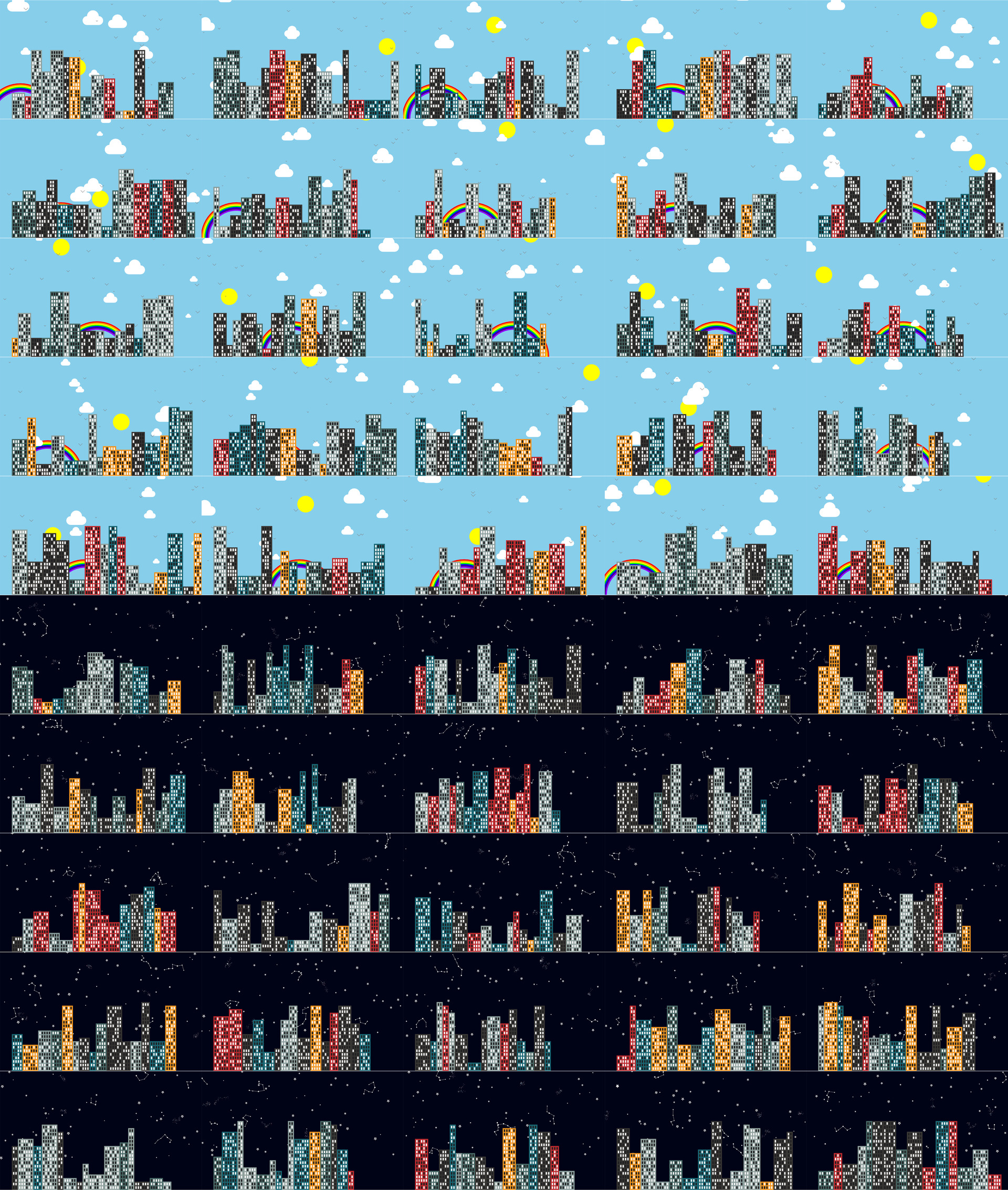 Now, I also have written a Python script that creates a randomized blue sky filled with seagulls, clouds, a rainbow and a the sun. Also, a night sky filled with stars, constellations and galaxies.