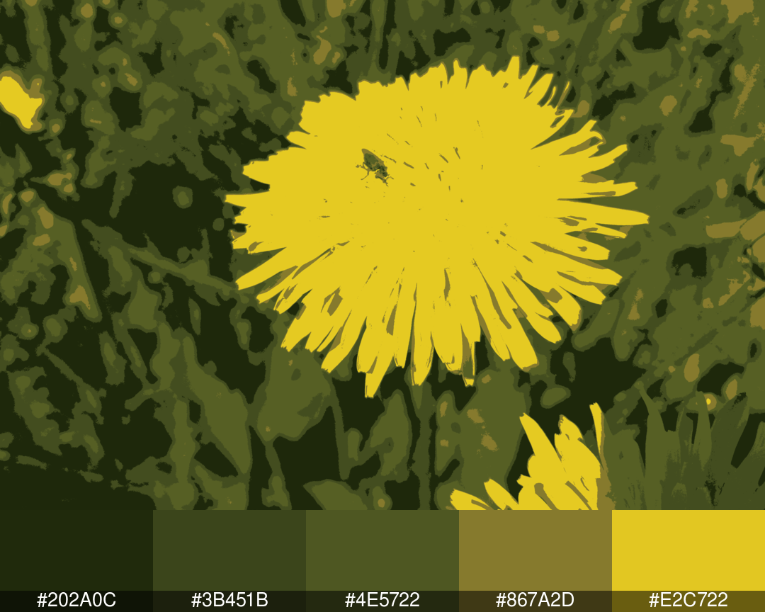 Slik ser bildene ut når bare de fem fargene er brukt: