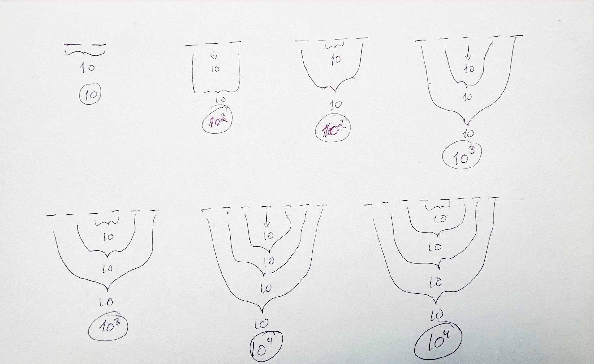 Videre, for hver av de 10 mulighetene kan siffer #2 og siffer #4 bestå av 10 ulike sifre (0-9), men de må være like for at det skal være palindrom. Derfor bare 10. Da har vi så langt 10x10. Siffer #1 og #5 må også være like, også kun variere mellom 0-9, og det er dermed 10 ulike muligheter for de 10x10 mulighetene vi har. Vi ender opp med 10x10x10 (eller 10³ = 1000 palindromer.