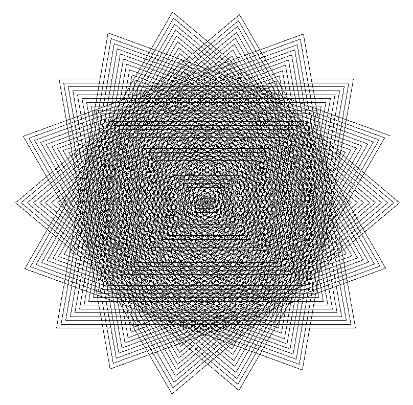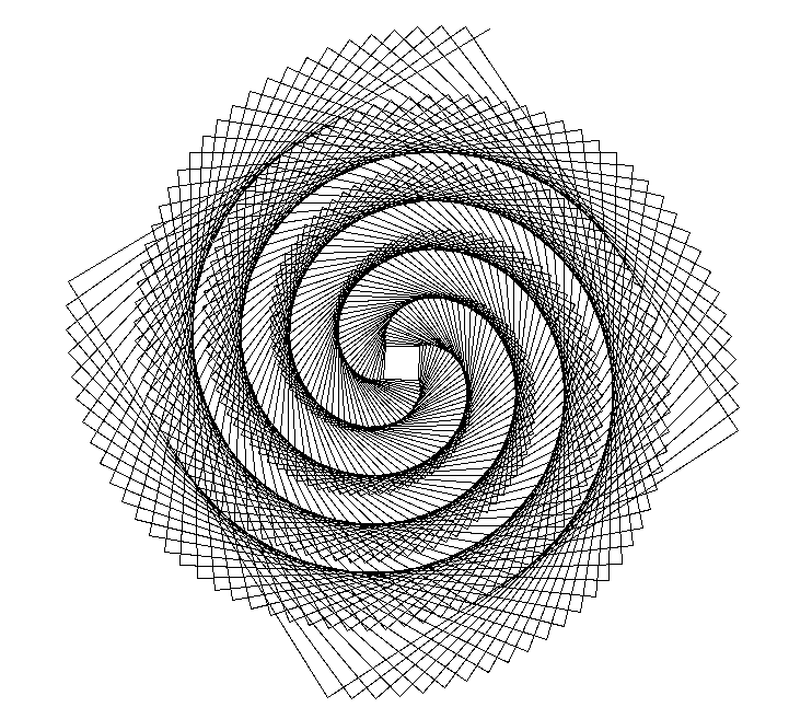 $ python -c "from turtle import *;tracer(0);[fd(x+30) or rt(90) for x in range(650)];exitonclick()"