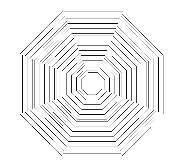 $ python -c "from turtle import *;tracer(0);[fd(x+30) or rt(45) for x in range(250)];exitonclick()"