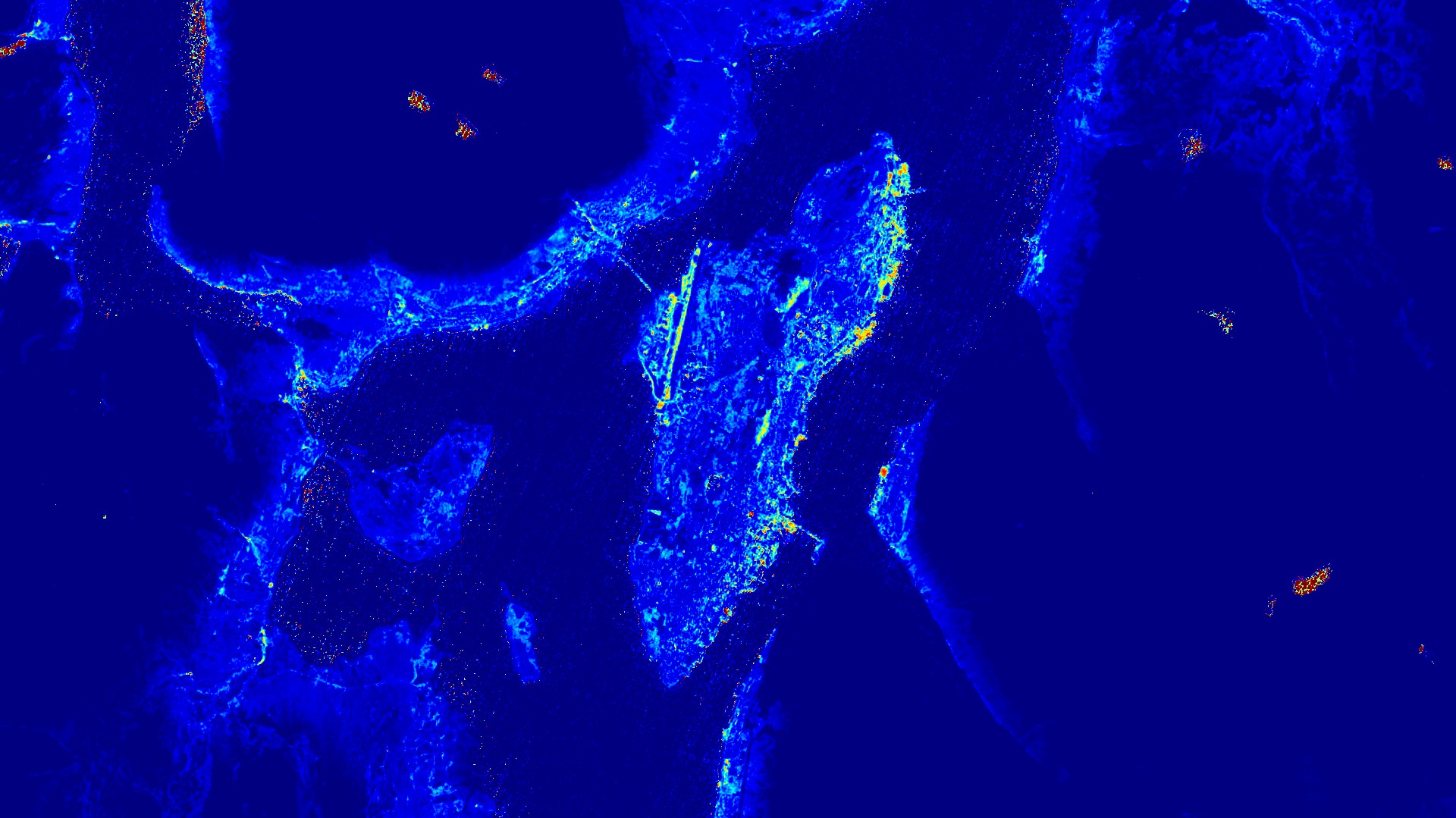 Short wave infrared (SWIR) measurements can help scientists estimate how much water is present in plants and soil, as water reflects SWIR wavelengths. Short wave infrared bands are also useful for distinguishing between cloud types (water clouds versus ice clouds), snow and ice, all of which appear white in visible light. In this composite vegetation appears in shades of red, soils vary from dark to light brown and urban areas are cyan blue. Newly burned land reflects strongly in SWIR bands, making them valuable for mapping fire damages. Each rock type reflects shortwave infrared light differently, making it possible to map out geology by comparing reflected SWIR light.