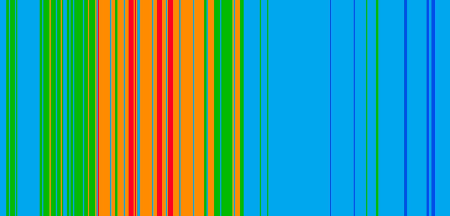 Det er tydelig at Andenes og Tromsø er ganske like. Ser vi på for eksempel på Oslo, blir fargestripene noe rødere og for Svalbard mer blått: